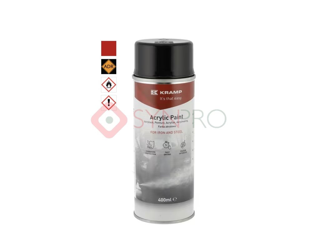 Tato barva ve spreji 1K značky Kramp se vyznačuje silným pigmentem, rychlým schnutím a vysokou kvalitou. Je stálobarevná, odolná vůči poškrábání, nárazům a úderům a má vysokou povrchovou tvrdost. Hodí se k opravám svrchní barvy strojů a jejich částí, nářadí, vozidel apod.