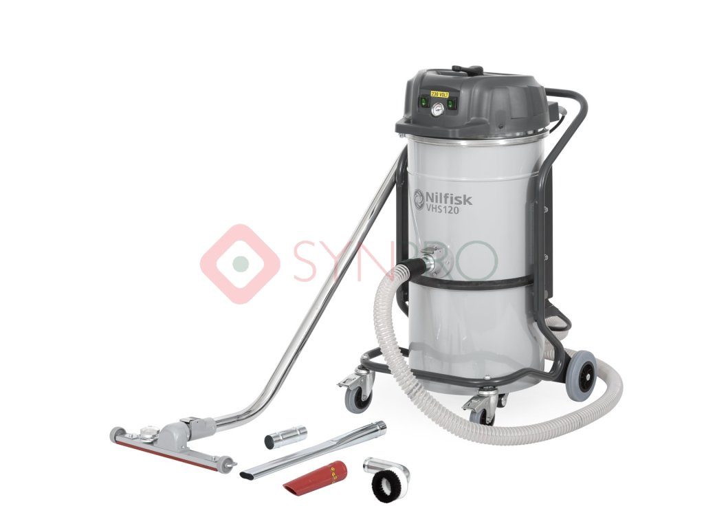 Vysavač VHS120 představuje vynikající rovnováhu mezi účinností, kompaktností a cenou. Kompaktní a výkonný, je již vybaven sadou průmyslového čisticího příslušenství, ideální pro čištění velkých ploch, jak na podlaze, tak na obtížných místech. Tato sada, která se skládá z 5metrové polyuretanové hadice a kompletní sady jednotlivých doplňků, vám umožní rychle a efektivně čistit plochy. Díky četným prvkům (rukojeť, podlahová hubice s kolečky, kužel, štěrbinová hubice s plochou špičkou atd.) je extrémně univerzální. Použití tohoto průmyslového vysavače znamená získat čistší pracovní prostředí během několika minut.